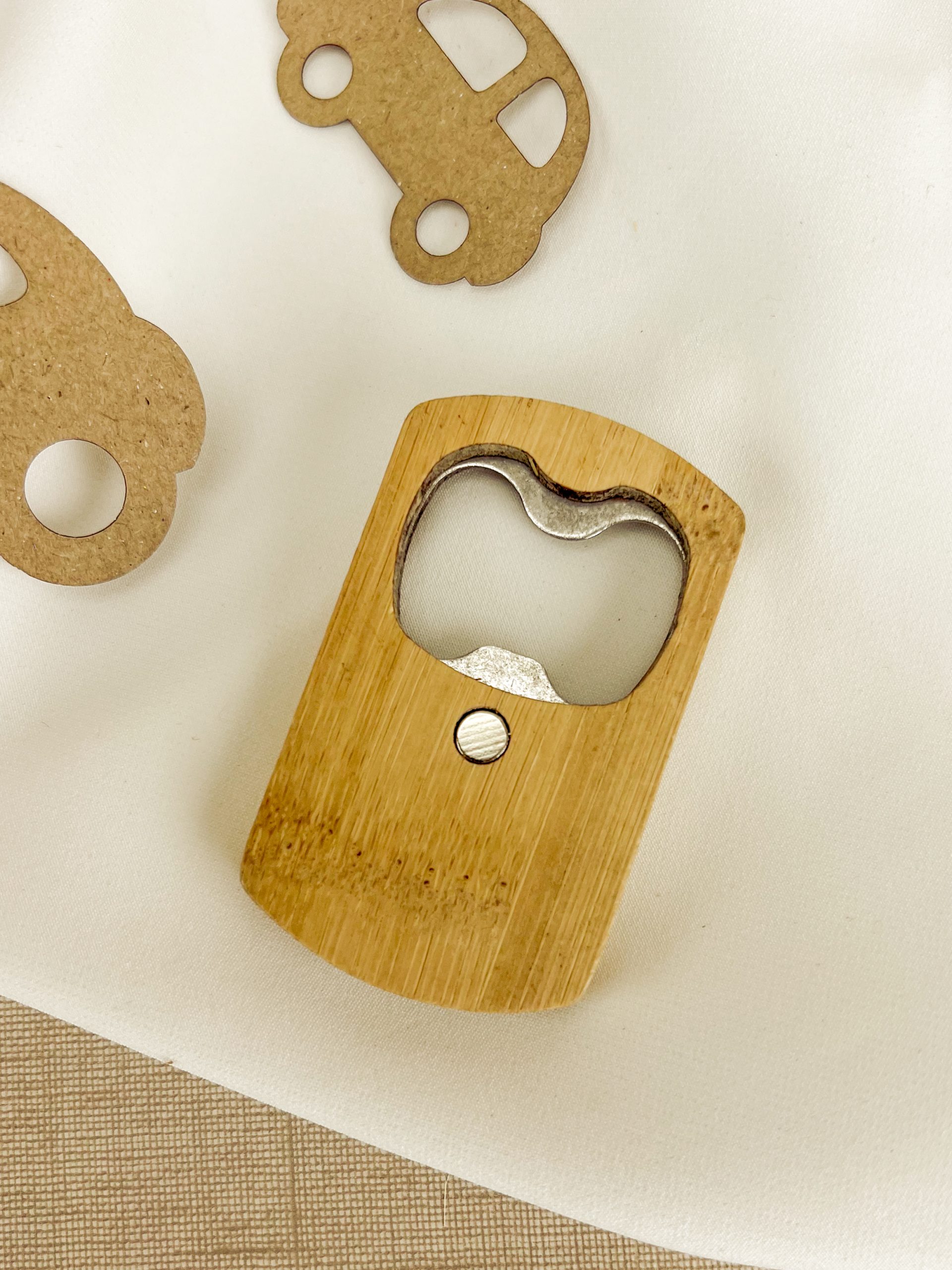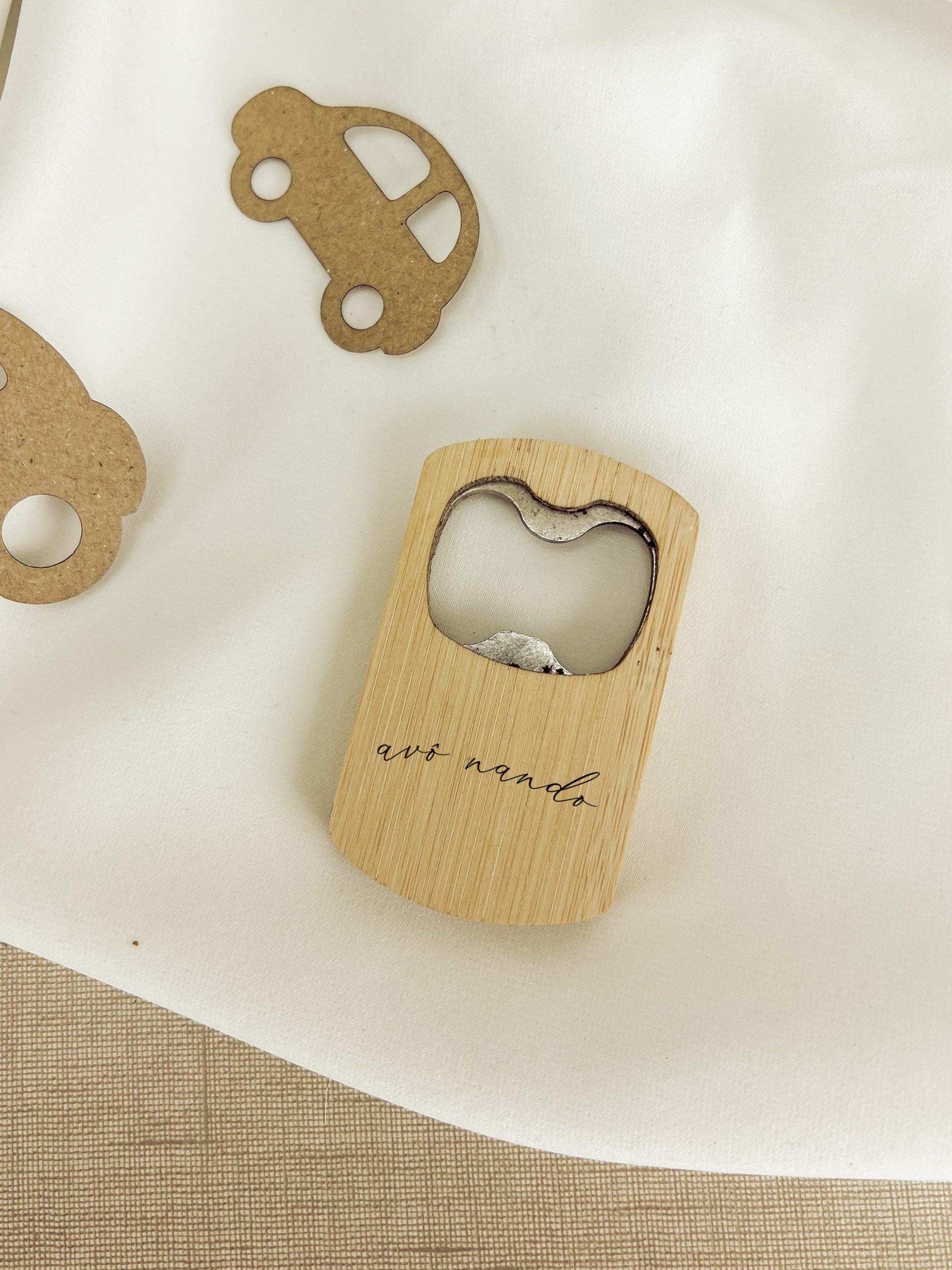 Abre caricas em bambu personalizado.