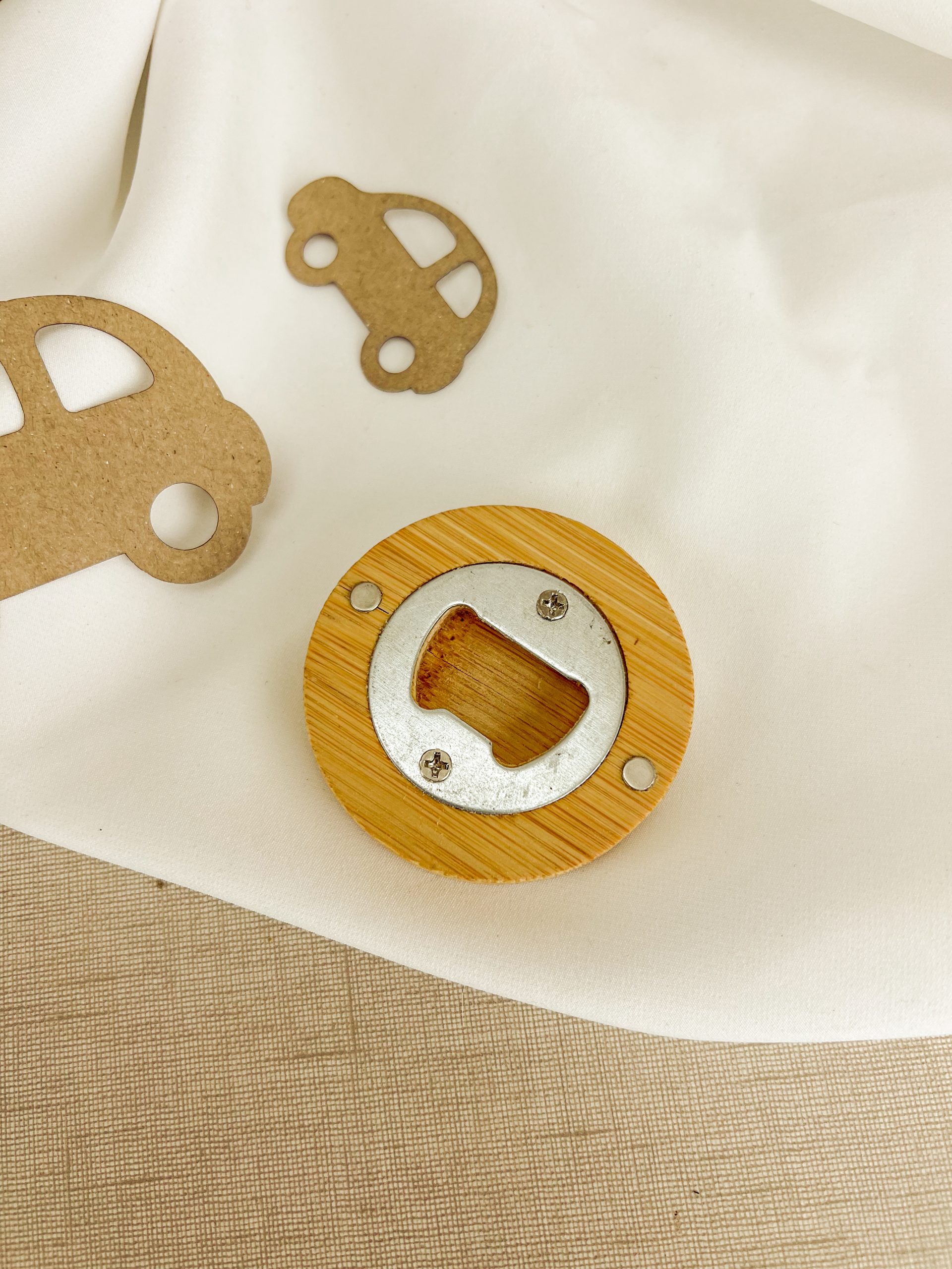 Abre caricas em bambu personalizado.