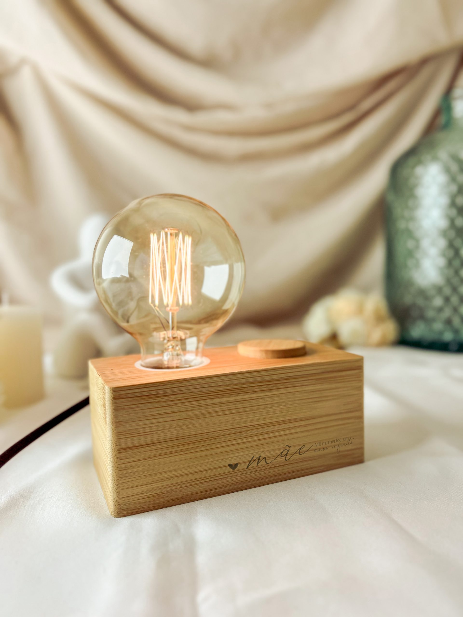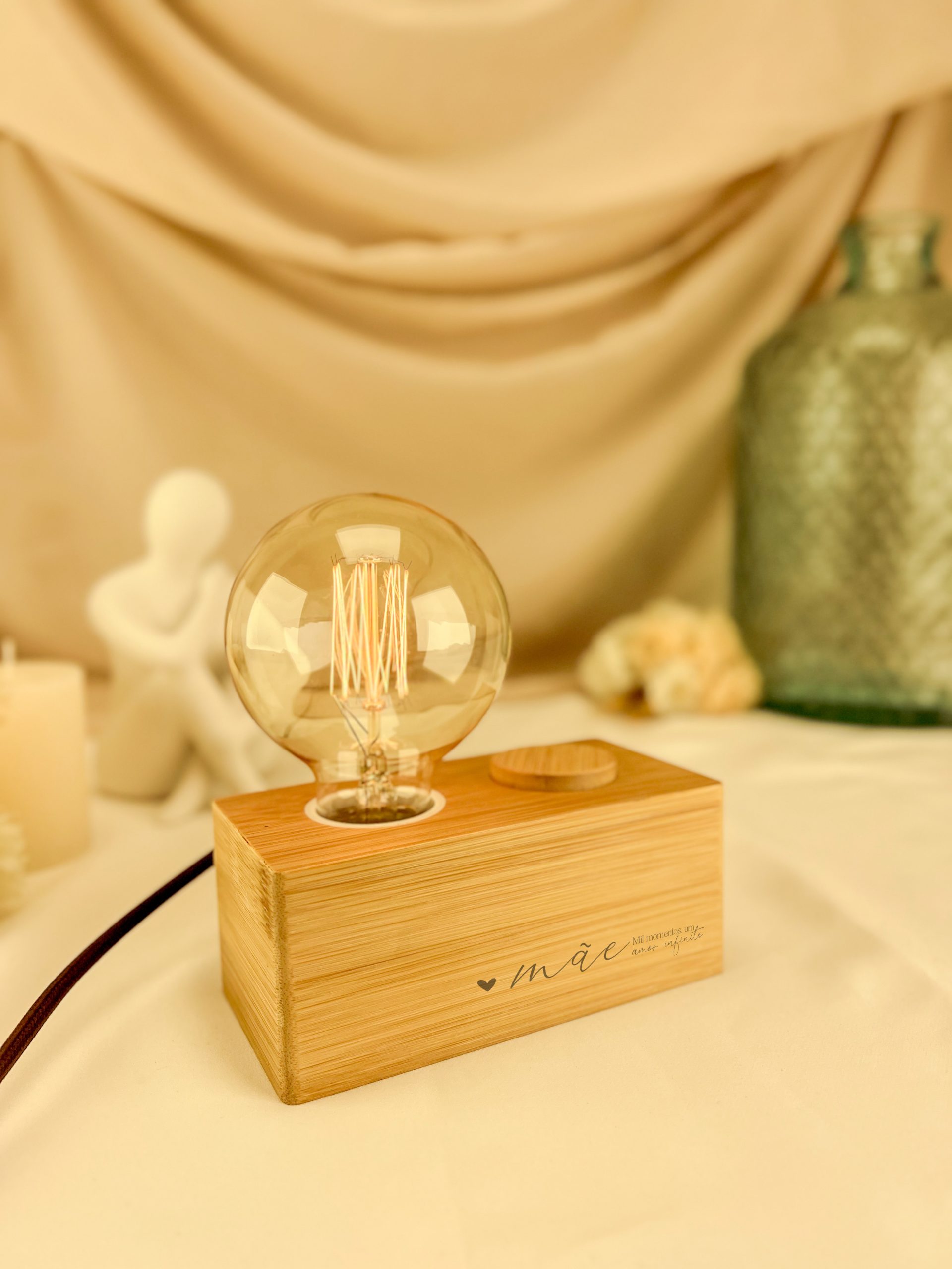 Candeeiro com design vintage, feito em bambu.