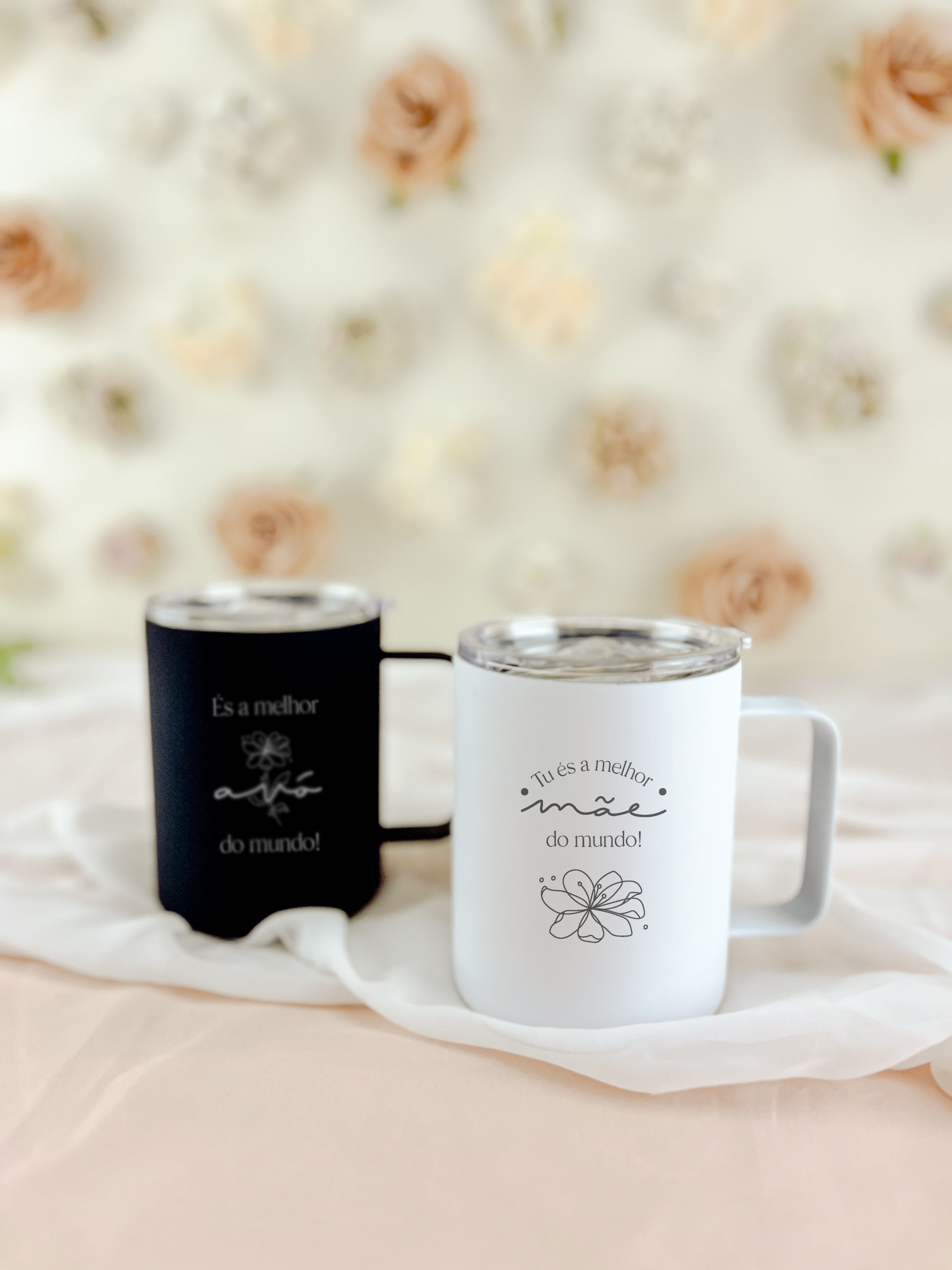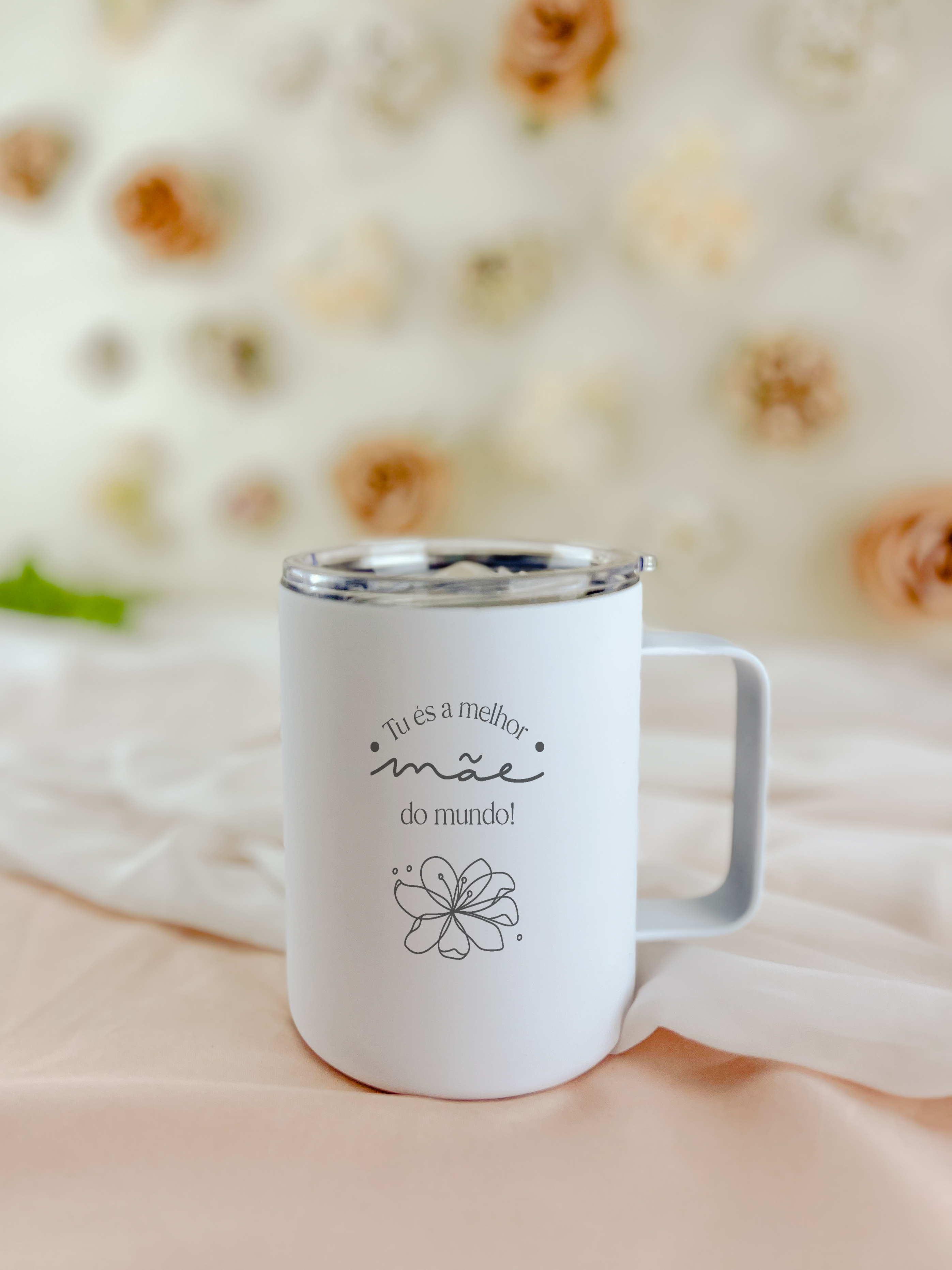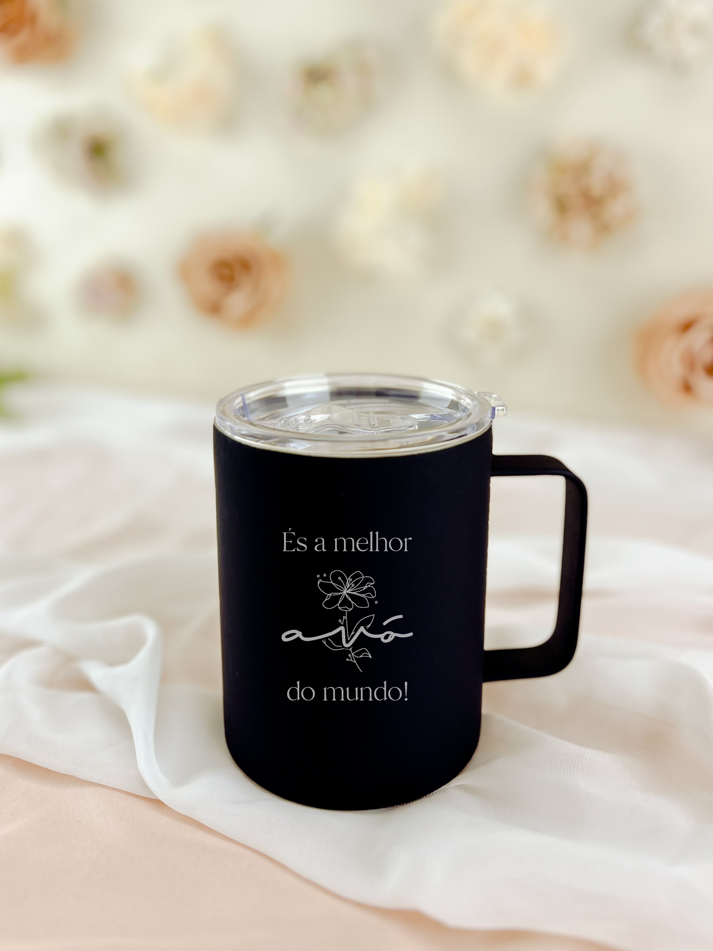 Exterior com acabamento em borracha. Inclui tampa transparente com fecho de pressão, com dispensador de fácil abertura, livre de BPA.