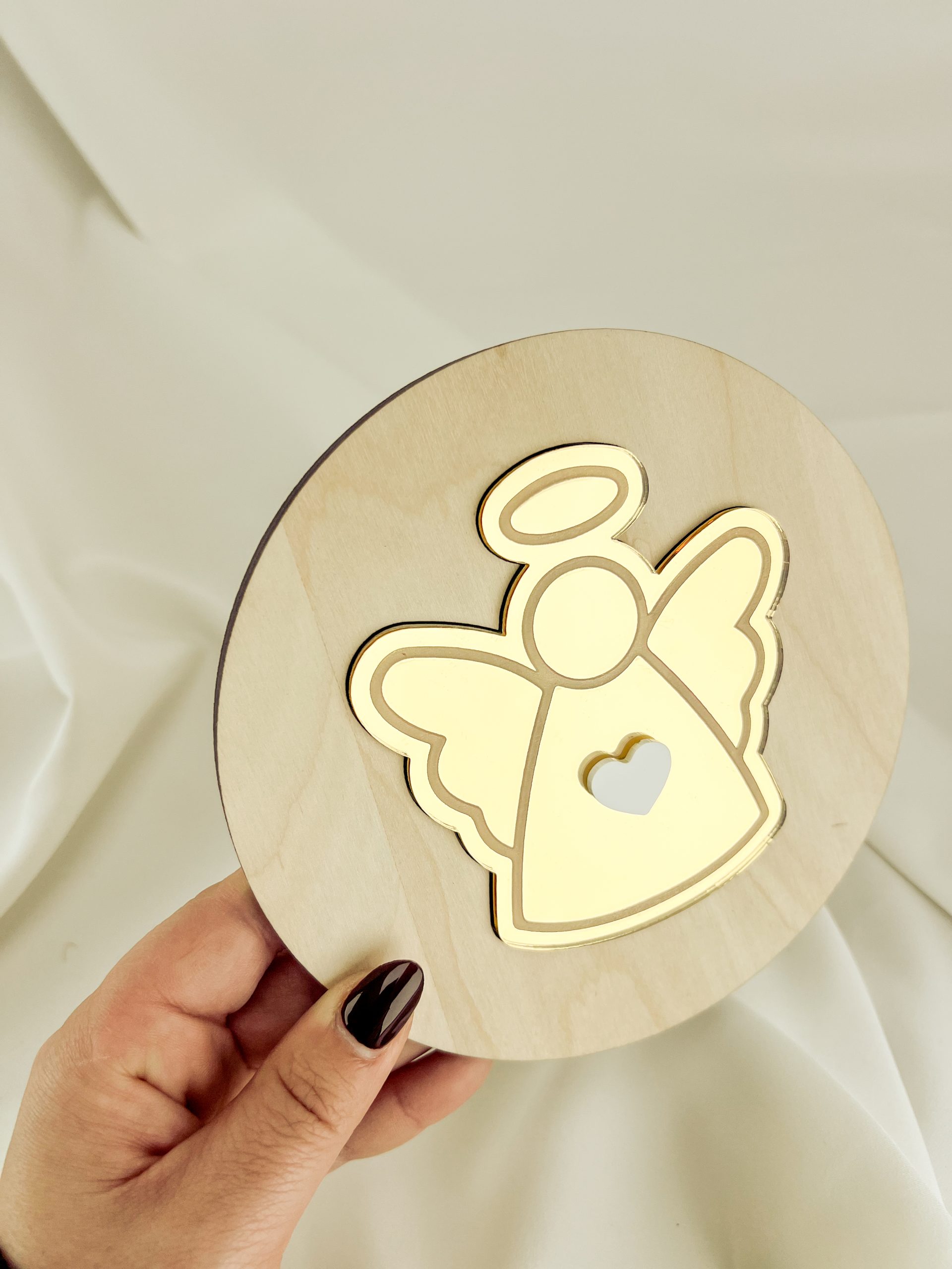 Anjo em acrílico dourado
