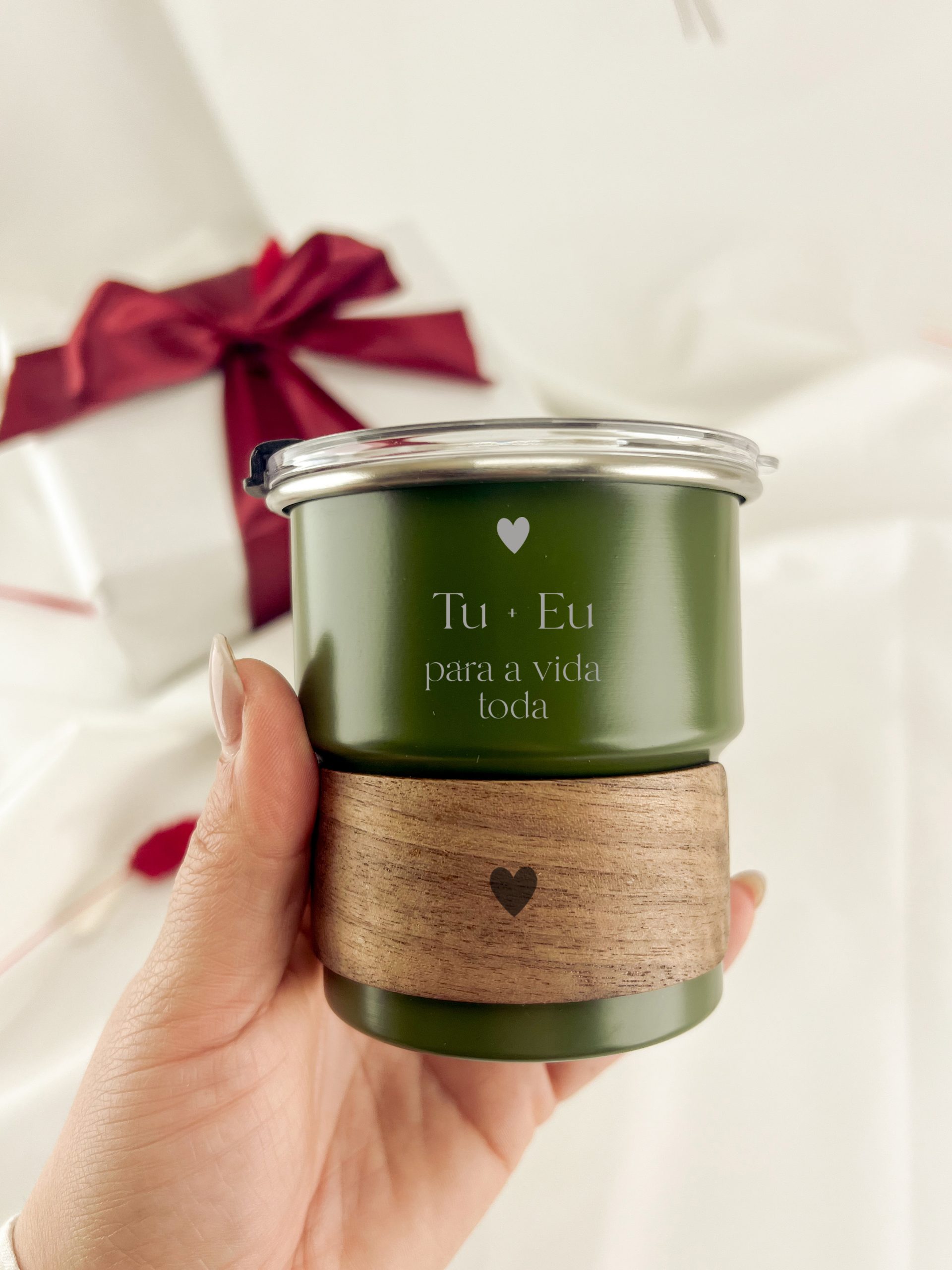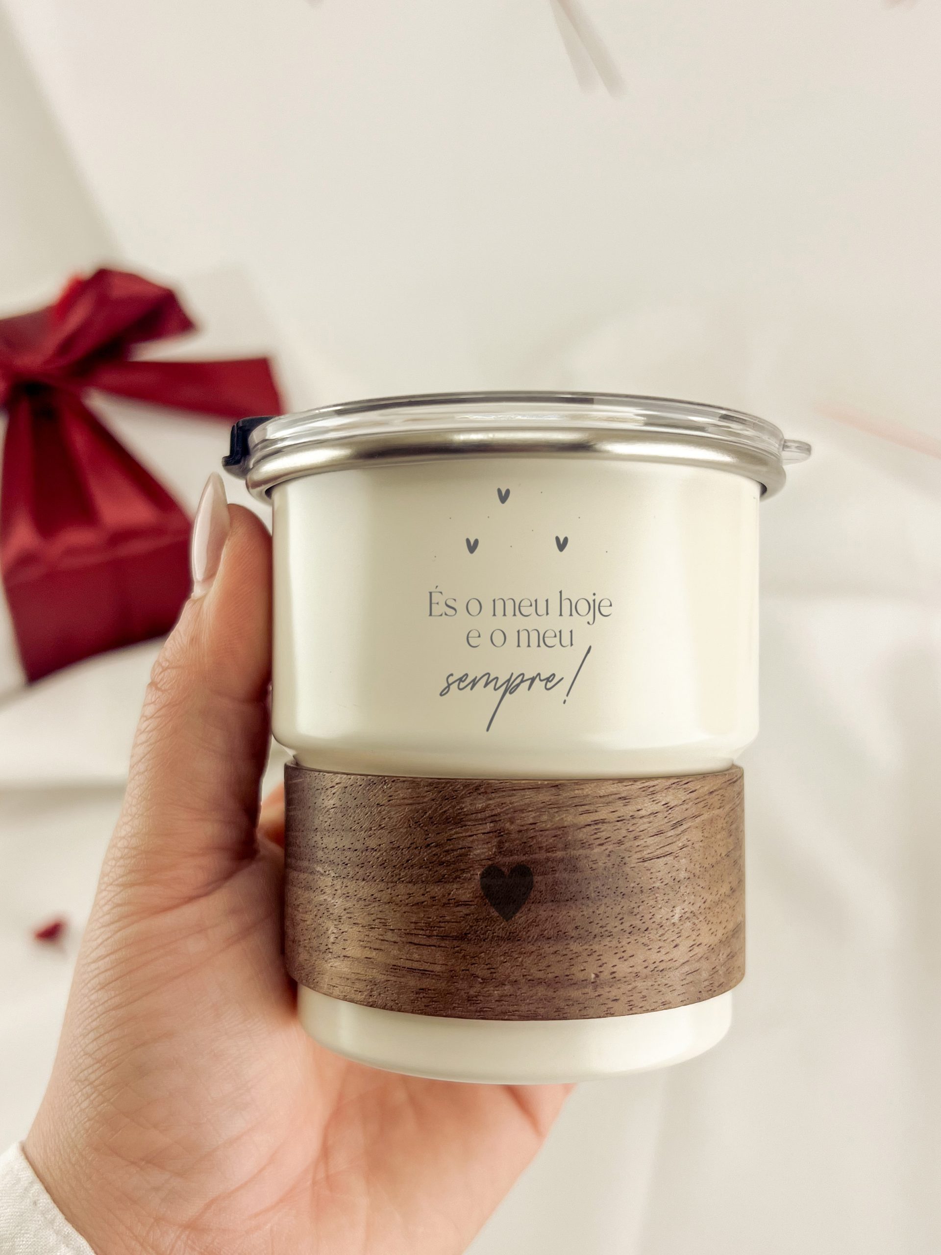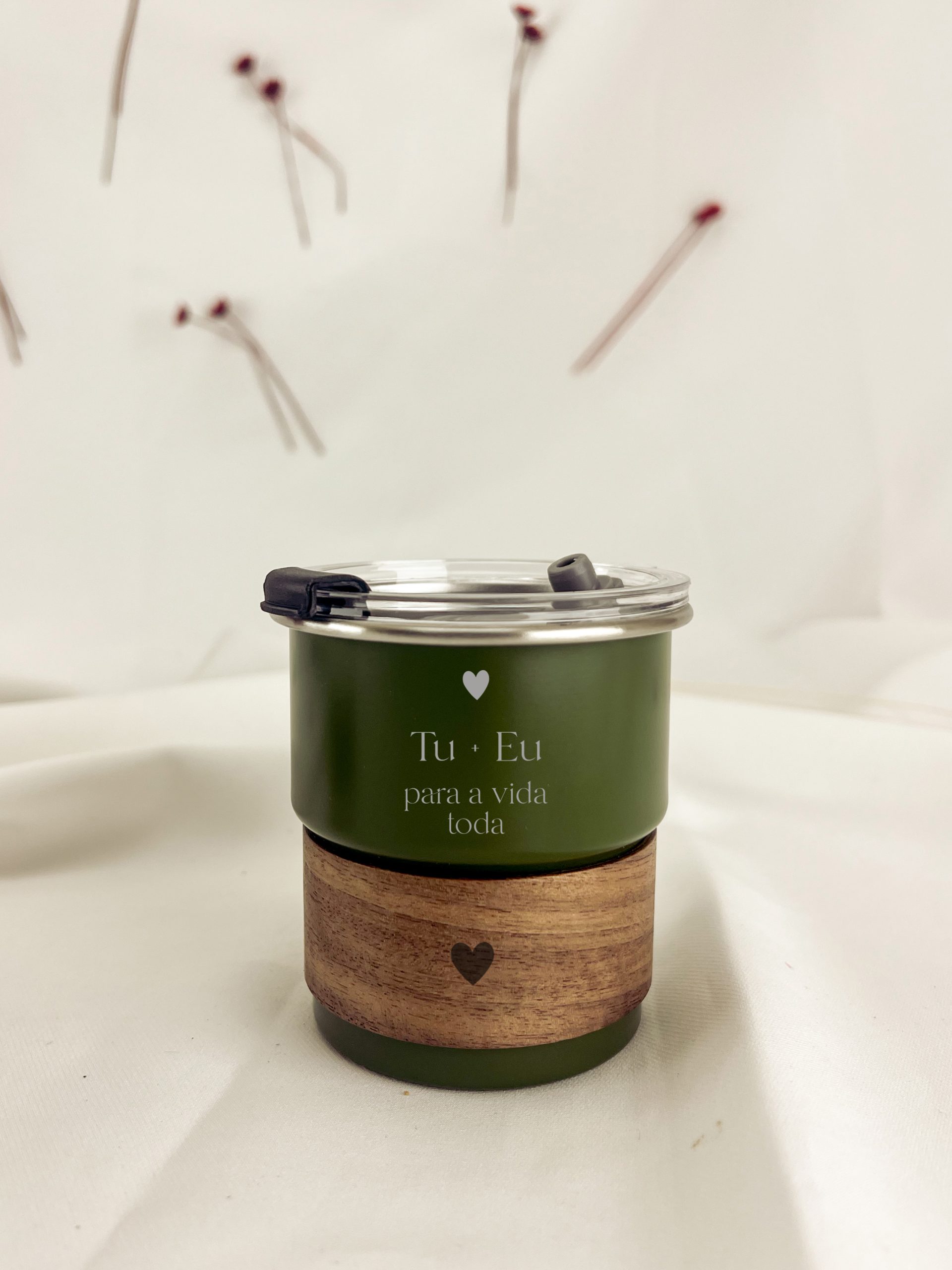 Com tampa transparente hermética com doseador e furo para palhinha, livre de BPA.