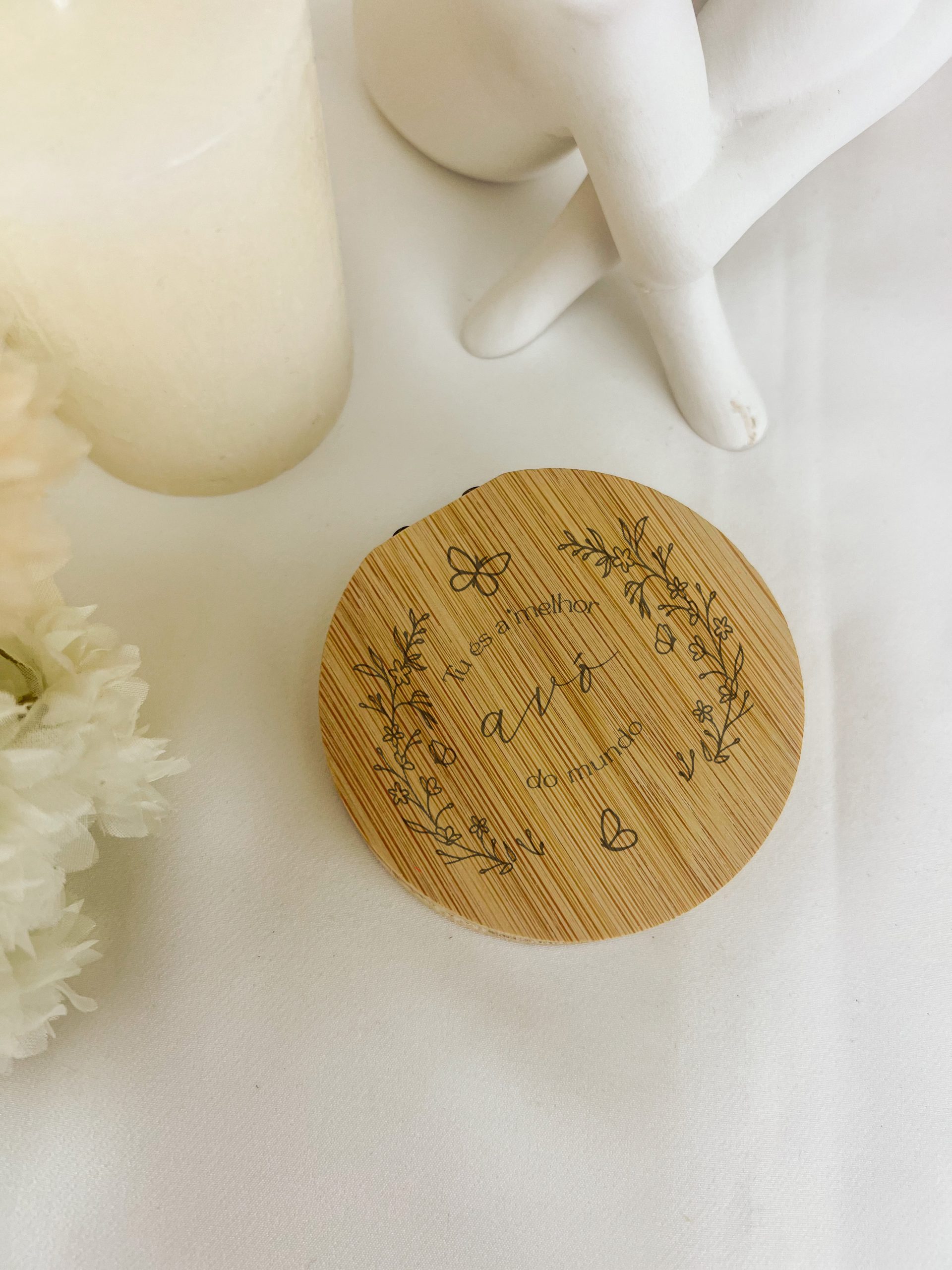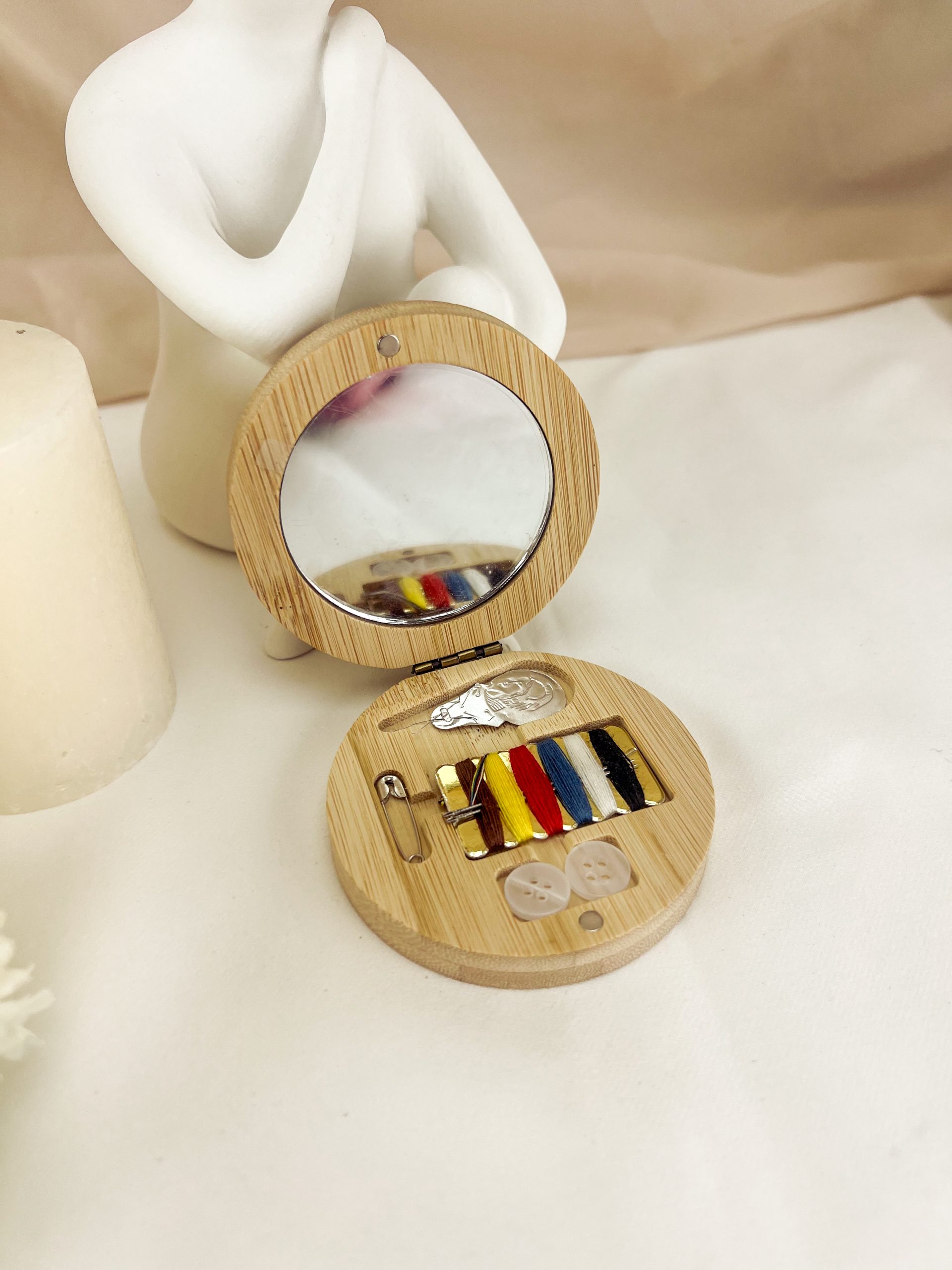 Caixa em bambu, com espelho no interior e fecho magnético.