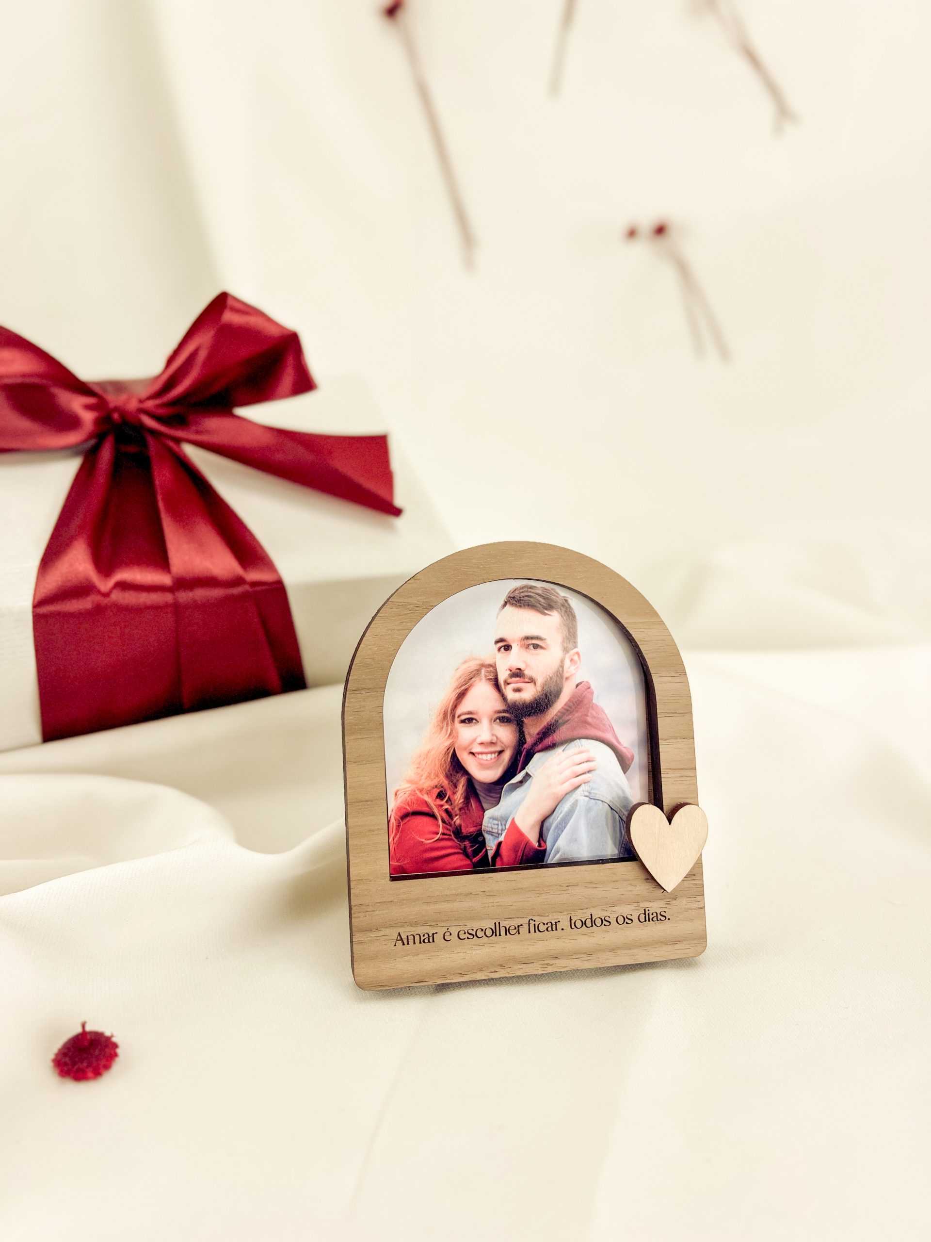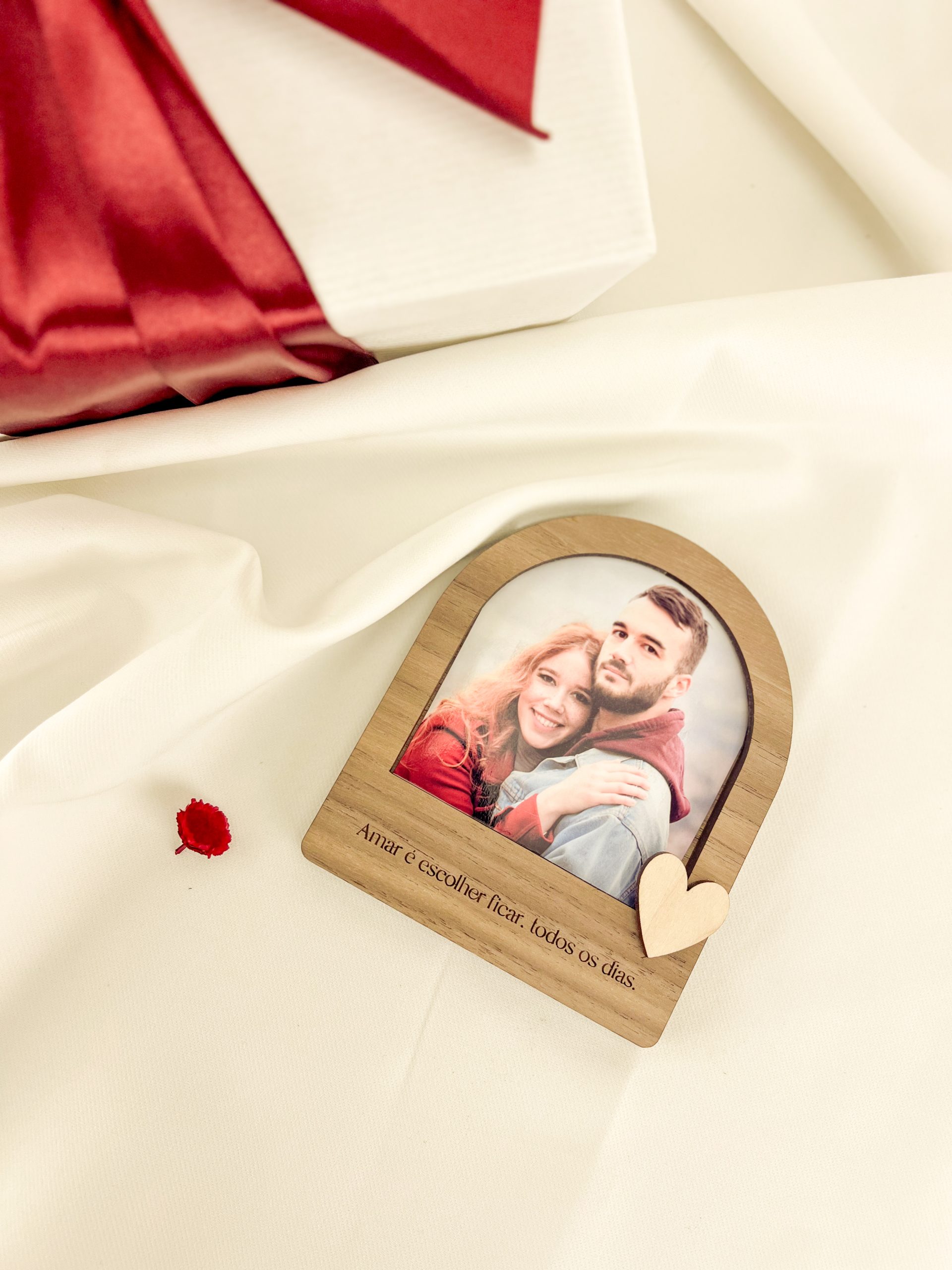 Material : Nogueira Dimensão : 10 x 12CM Tamanho Fotografia : 8,5 x 8,5CM Coração em madeira de bétula