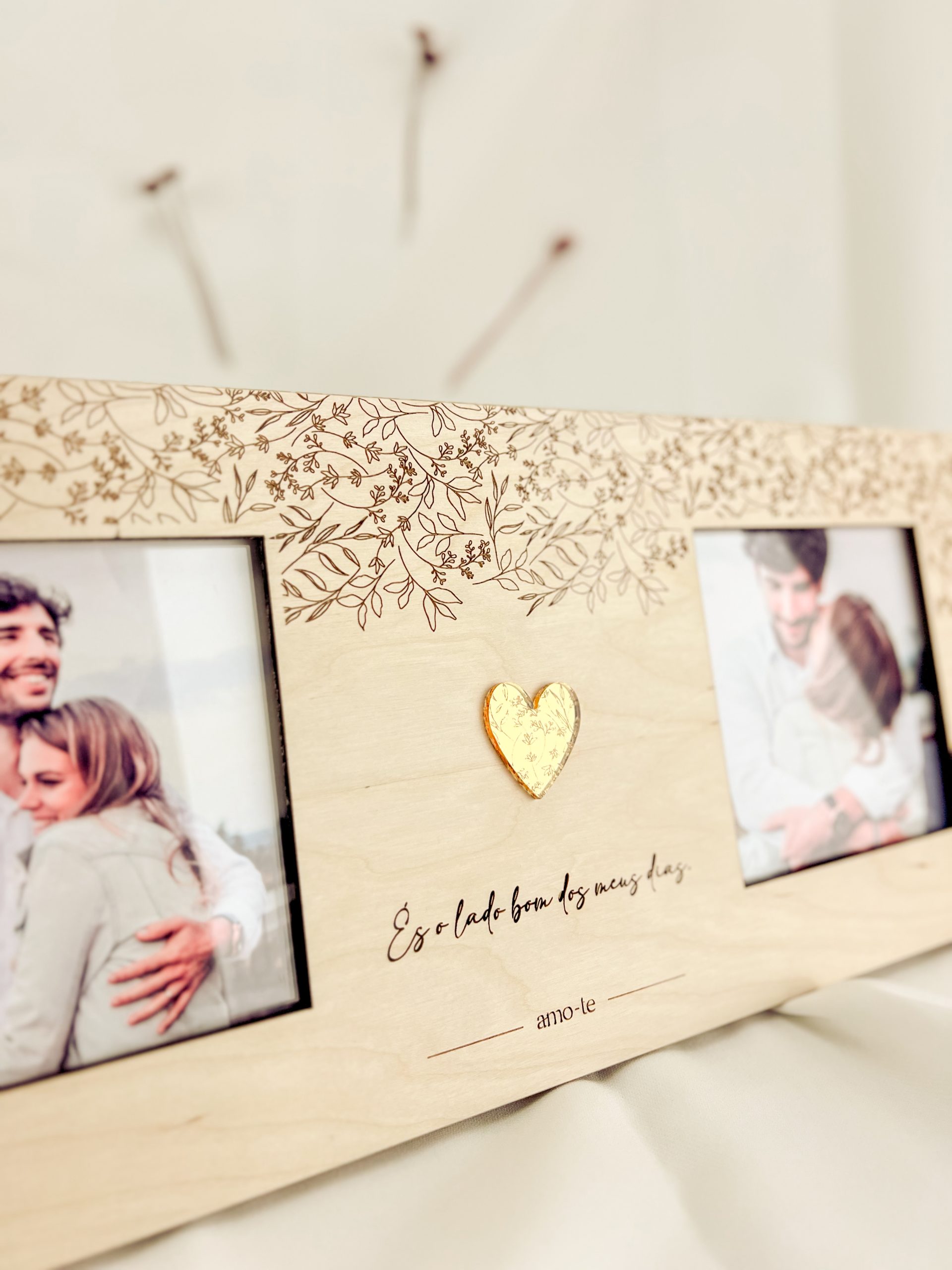 Coração em acrílico dourado