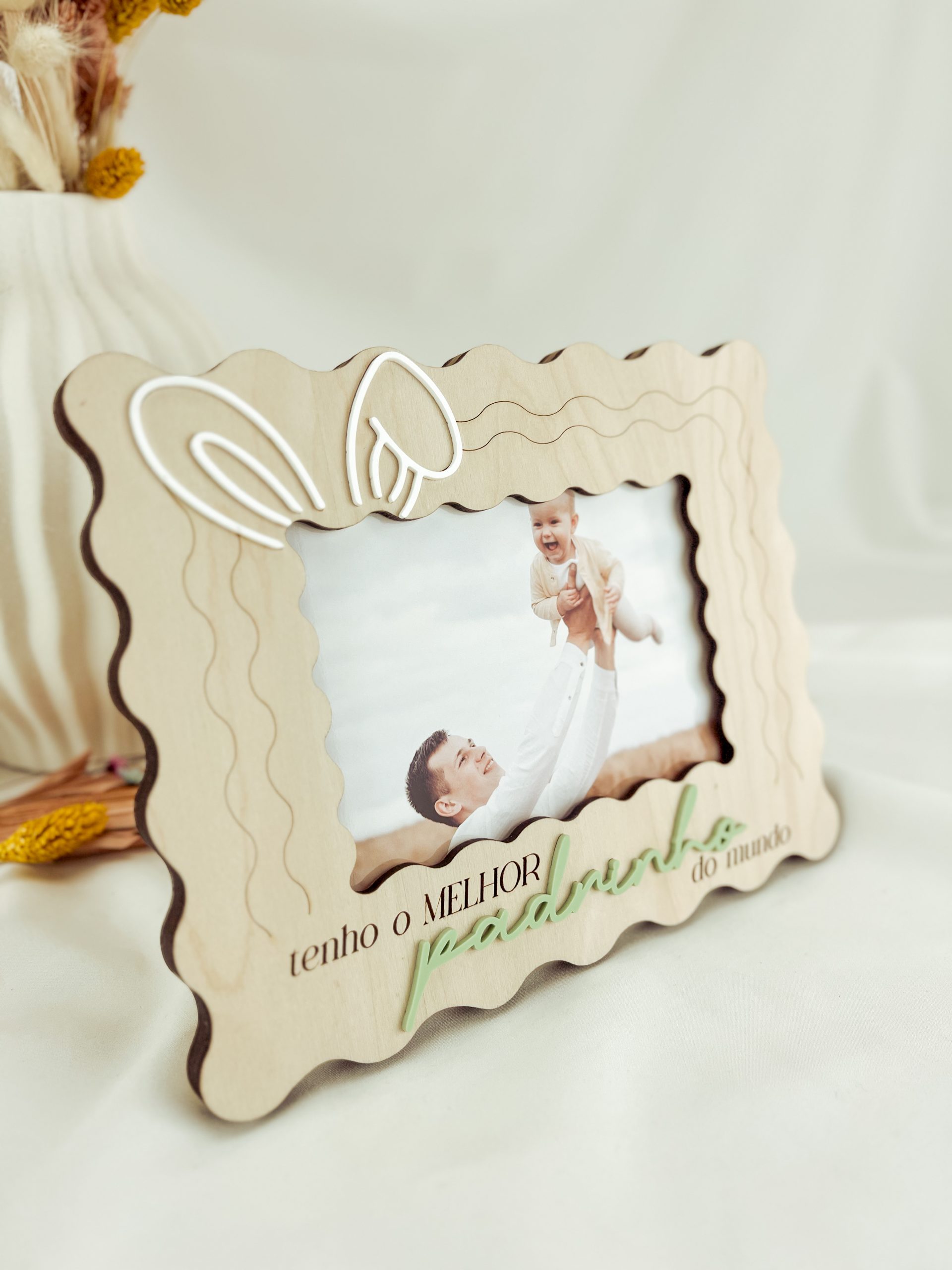 Moldura de arestas onduladas. Possibilidade de personalizar com outros textos. Se pretender com fotografia, envie por favor a mesma por e-mail para encomendas@lightcut.pt com o respetivo número de encomenda gerado no carrinho.