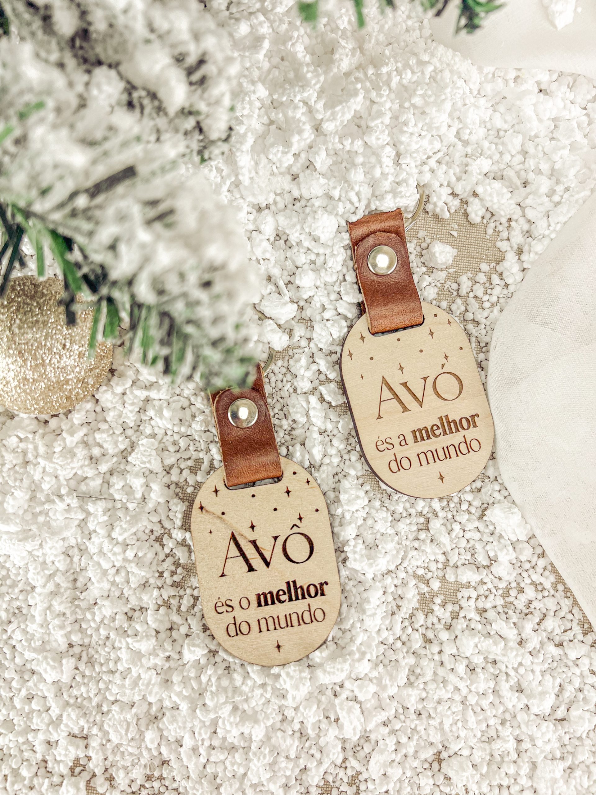 Porta Chaves personalizado em madeira com detalhe de tira em couro.