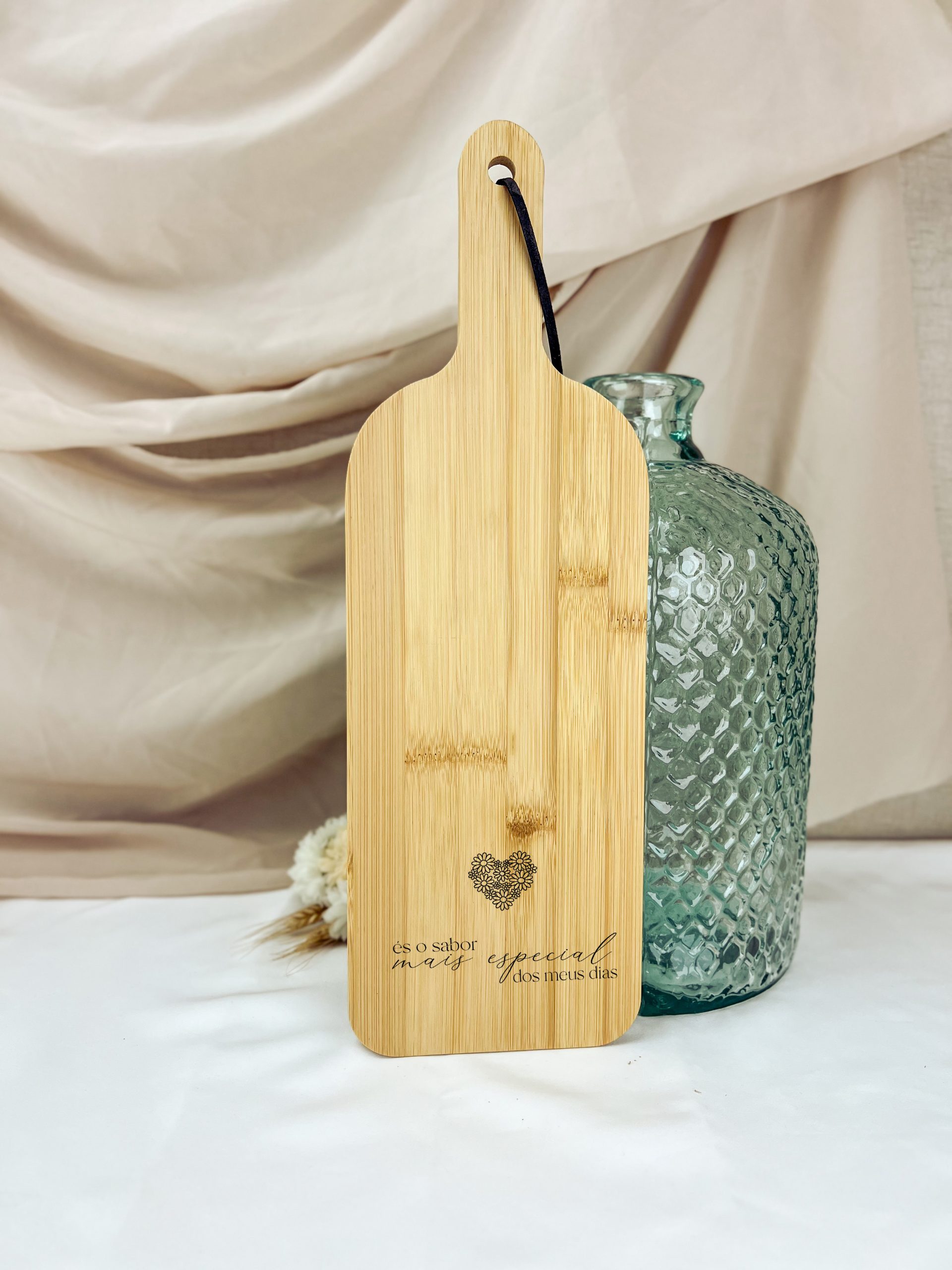 Com pega para fácil manuseio e cordão para pendurar em imitação de pele.