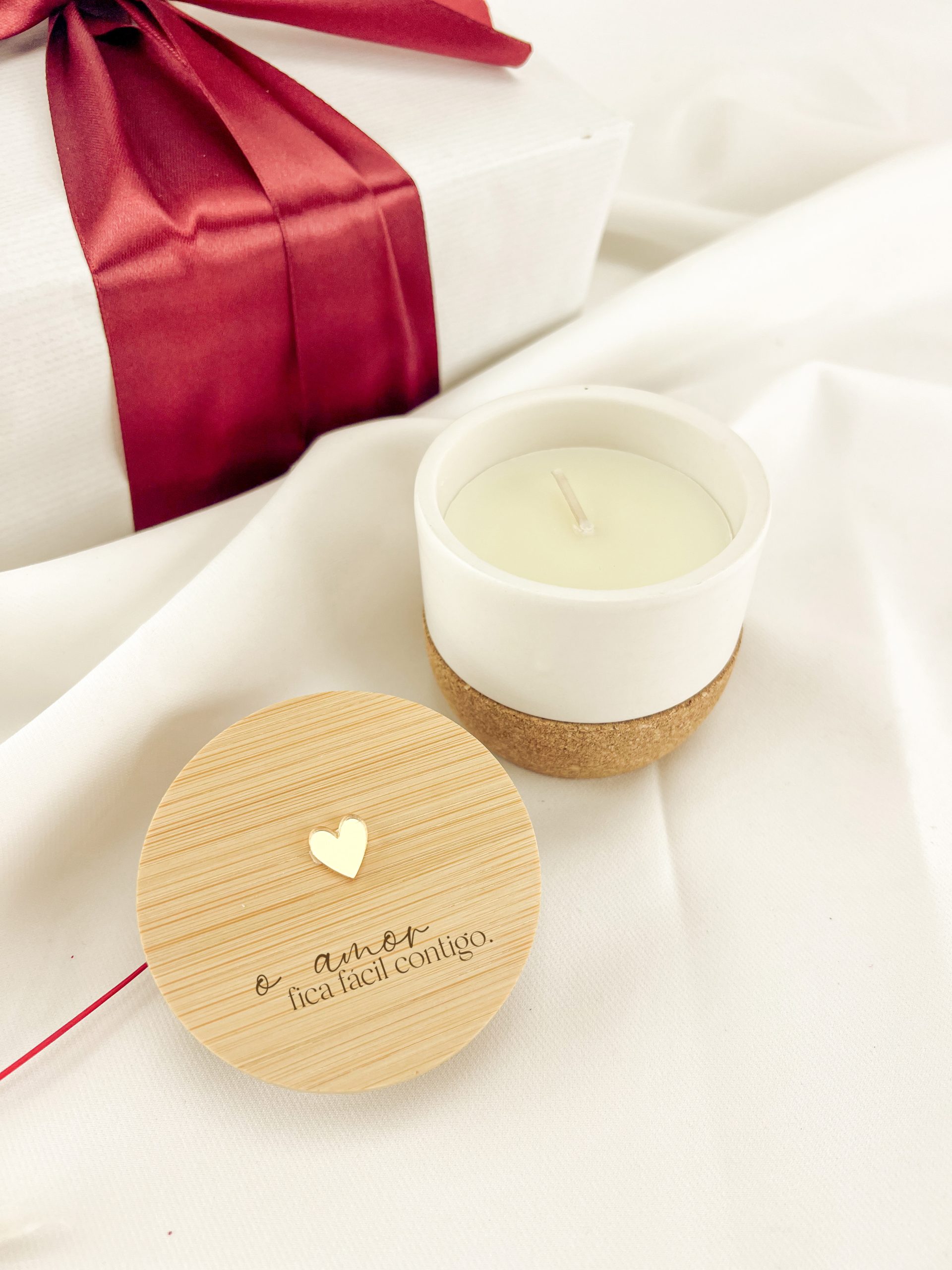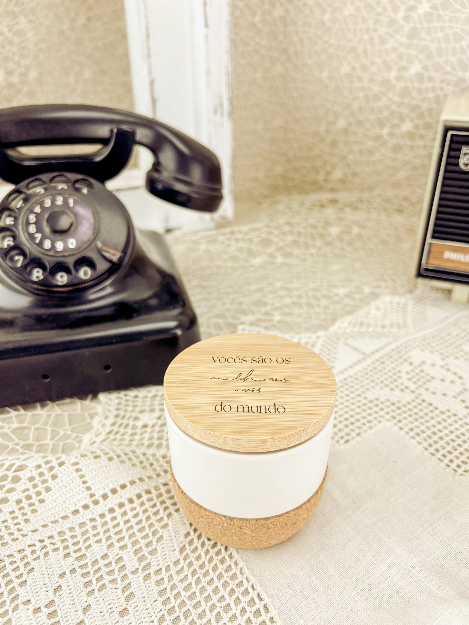 Vela c/ base de cortiça personalizada com aroma a linho fresco. Materiais: Cerâmica e cortiça Dimensão : 7CM x 6,5CM